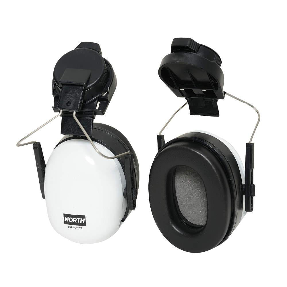 Howard Leight Leightning Earmuffs. Leightning L3H for use with North Hard Hats and Face Shields. Same attenuation as North Intruder cap-mounted earmuff. Sleek design; lower profile cups attract less dirt for better hygiene.Easy height adjustment provides a better fit for greater wearer comfort. Ear cups snap in place during use and swing back when not in use.