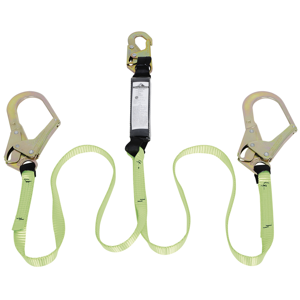 PEAKWORKS SHOCK ABSORBING LANYARD - SP - TWIN LEG - SNAP & FORM HOOKS - 4'