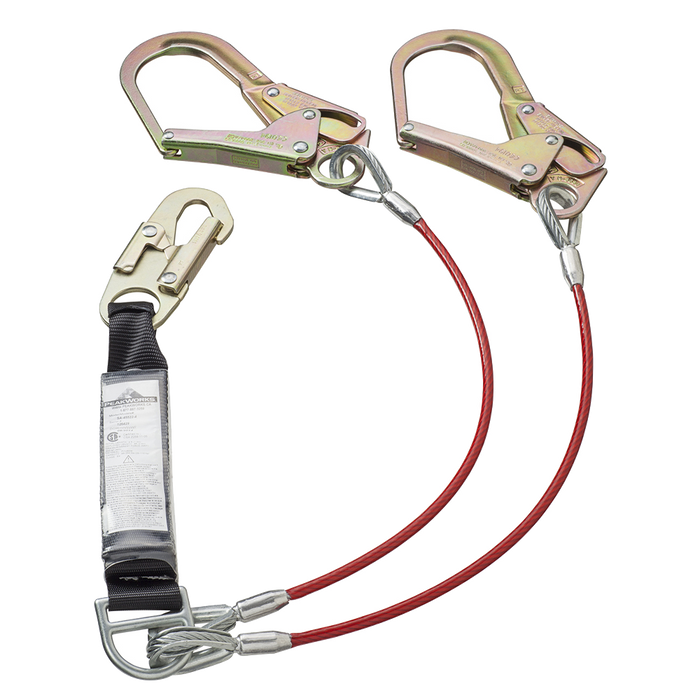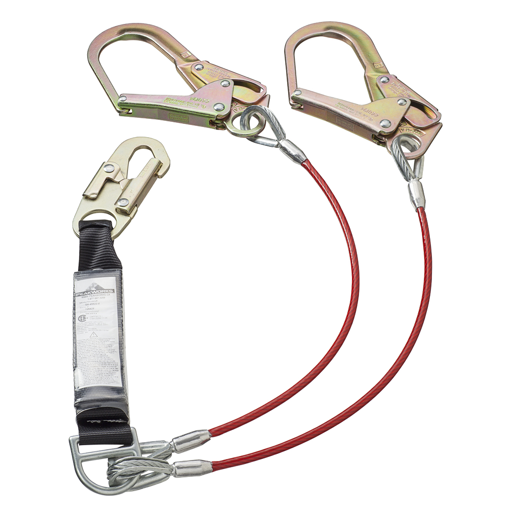 PEAKWORKS E4 Shock Absorbing Lanyard - SP - Twin Leg - Galv. Cable - Snap & Form Hooks - 6' (1.8 M)